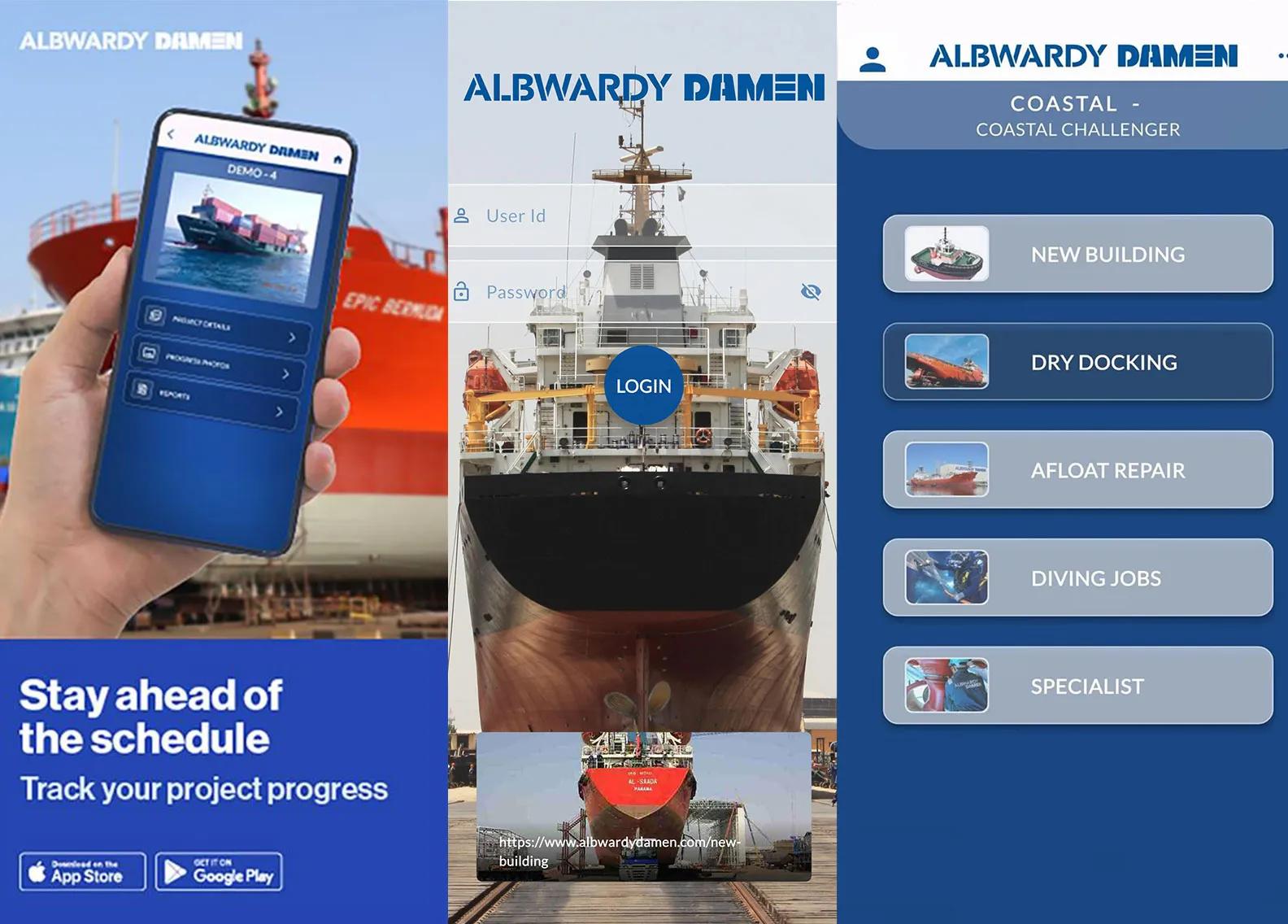 We are pleased to announce the successful launch of our mobile application, Albwardy Damen-strategically developed to deliver added value to our customers. The application provides updates on ongoing project activities, enabling vessel owners to stay fully informed and connected without the need to be physically present at our shipyard.