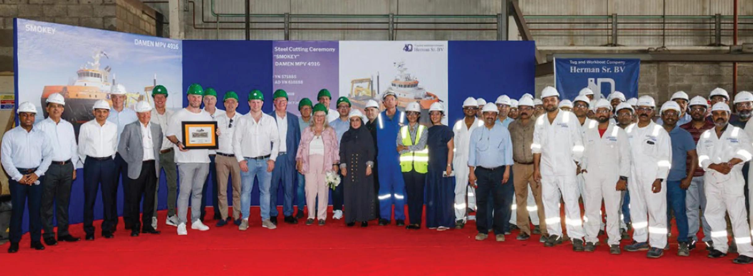 Herman Senior is a long-standing client of Damen and frequently acts as the launching customer for first-in-series Damen designs, reflecting the shared values and long-term partnership between the two family-owned companies. During the Ceremony Mr Chris van Dodewaard and Mr Erwin van Dodewaard welded two Coins into the keel structure, symbolising good fortune, protection, and safe voyages for the vessel and her crew.